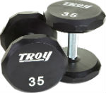 Anyway, big time commercial gyms have gotten fond of urethane dumbbells. We’re talking the types of gyms who are cool with spending money to get stuff that looks and performs great for years. The big health clubs have an image to maintain and can afford to spend what it takes to keep their image intact. It’s a wise investment for a gym that plans on being around for a while. Depending on how you count it, urethane dumbbells cost about twice that of rubber, so once they have to buy a second set of rubber dumbbells, the urethane would have have paid for themselves, and a few years after that they’re actually cheaper long term.