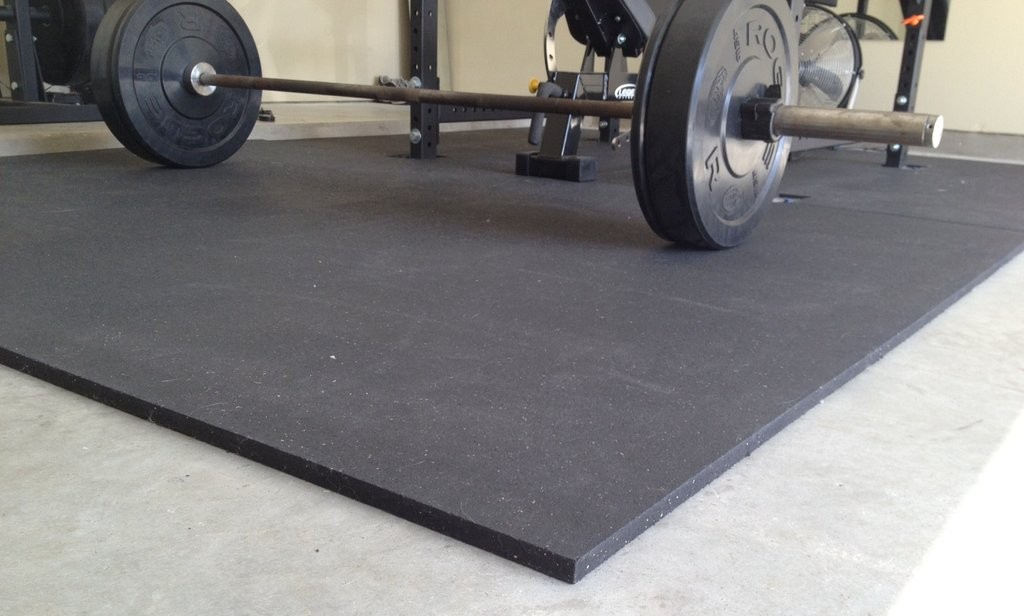 Get rubber flooring instead, at least 3/8″ thick, depending on the environment. I have more advice in the gym flooring article.
